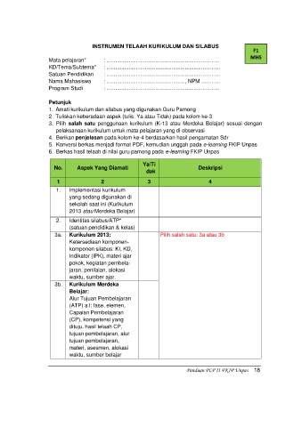 1. Amati kurikulum dan silabus yang digunakan Guru Pamong